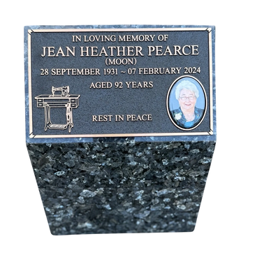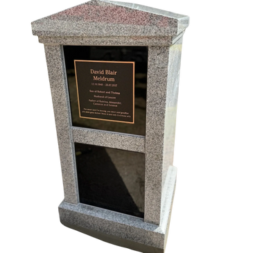 Colour : Polished grey with Black granite insert panels & a bronze plaque.